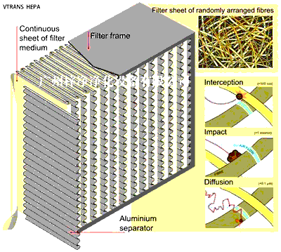 6、高效空氣過濾器由外框、濾芯(高效濾紙、銅版隔板紙或筋條紙)組成。為加工組裝高效過濾器就必須需經過外框制作、來料(濾紙)初檢、復檢、折紙、插紙、封膠和成型工序。 潔凈車間的高效過濾器可分為兩種,一種為有隔板高效過濾器和無隔板高效過濾器,有隔板高效過濾器配高效送風口用于潔凈車間末端送風過濾器,也就是業內說的三級過濾中的最后一道過濾,價格也是最貴的一種。 玻璃纖維