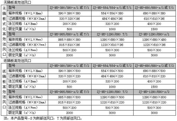 高效送風口規格尺寸及技術參數:高效送風口規格尺寸及技術參數