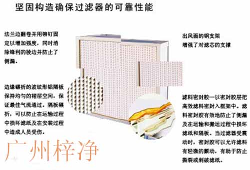 我們采用公司特制的鋁箔或膠版紙做間隔片,使得空氣分布均勻且風(fēng)速勻稱,達(dá)到高效過濾;梓凈生產(chǎn)的每臺高效過濾器均嚴(yán)格按照標(biāo)準(zhǔn)采用業(yè)檢測設(shè)備進(jìn)行檢測,保證出廠之空氣過濾器產(chǎn)品100%合格;