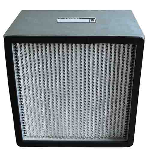鋁隔板高效過濾器過濾效率≥99.9%~99.999%@≥0.5μm(鈉焰法)或歐洲標準H12-H14。鋁隔板高效過濾器外框為:夾層木板、鍍鋅板、鋁型材、不銹鋼板;