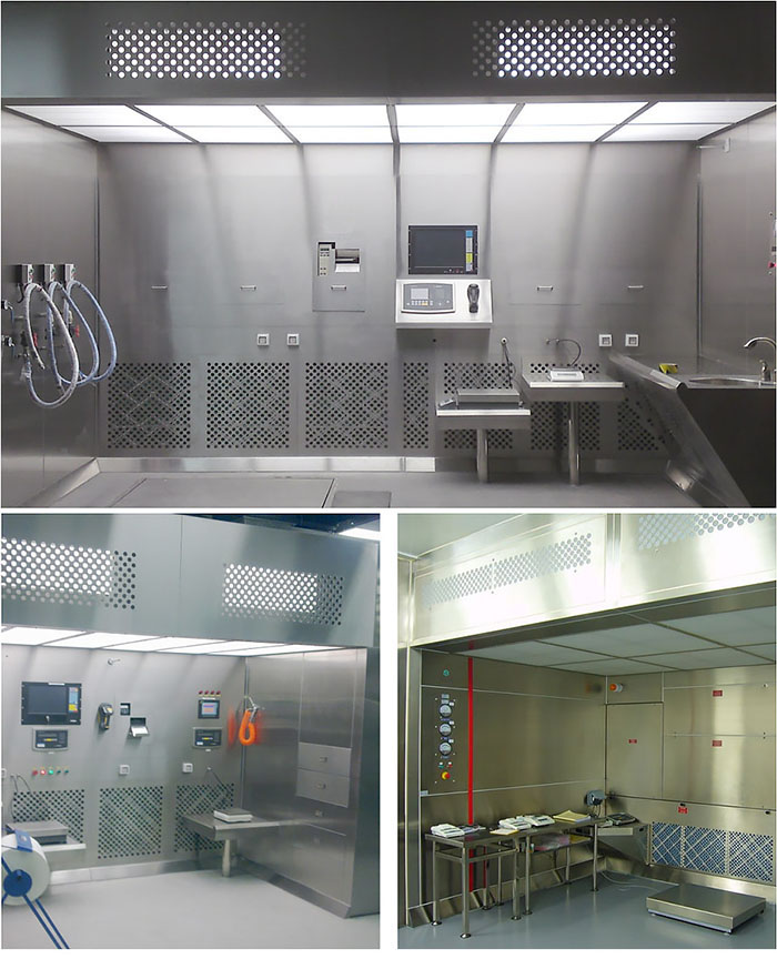 稱量房,負壓稱量房又稱作負壓稱量間、負壓稱量室、負壓稱量罩或負壓稱量單元,負壓稱量房由工作區(qū)、回風箱體、風機箱體、出風箱體、外箱體、由初效過濾器+中效過濾器+高效過濾器、可變風量風機組、PLC控制系統(tǒng)和傳感系統(tǒng)等幾大部件組成。